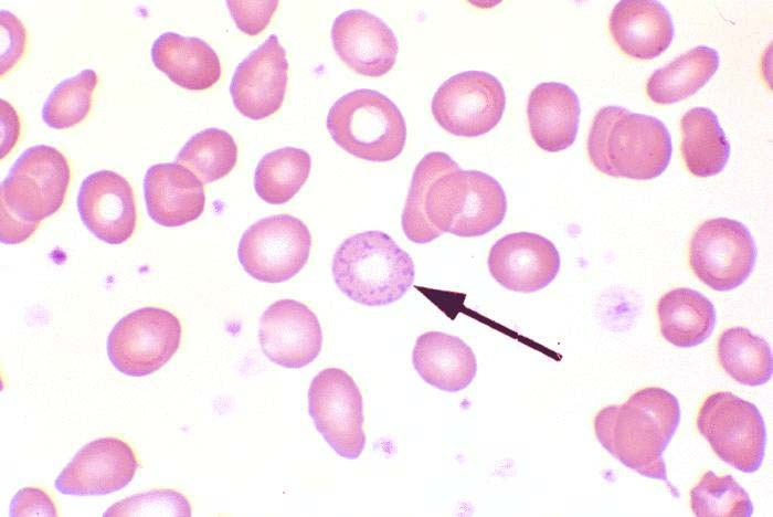 It may also be an indication of some other injury of the bone marrow, and/ or anemia (megaloblastic anemia). Basophilic stippling is associated with increased red cell production and is commonly seen when there is increased polychromatophilia. Coarse basophilic stippling is seen in megaloblastic anemia and other forms of severe anemias, lead poisoning, and thalassemia. Coarse basophilic stippling indicates impaired hemoglobin synthesis, probably due to the instability of RNA in the young cell.
