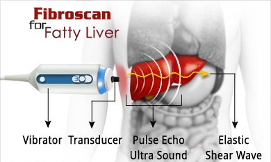 The stage of liver disease can be estimated by measuring liver stiffness using a FibroScan. This scan is painless, takes less than ten minutes and produces immediate results. FibroScan has dramatically reduced the need for having a liver biopsy. Liver hardness is evaluated by measuring the velocity of a vibration wave (also called a ‘shear wave’) generated on the skin. Shear wave velocity is determined by measuring the time the vibration wave takes to travel to a particular depth inside the liver.