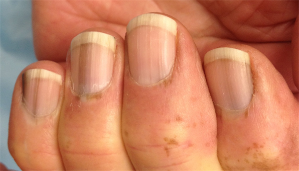 Laugier Hunziker syndrome (LHS) is associated with hyperpigmentation or discoloration on specific parts of the skin. It usually appears on the oral mucosa which covers the major portion of the mouth except that of teeth. This pigmentation not only occurs beneath the lips but also on the nails with longitudinal biconvex dark brown patterns. The major symptoms of this disorder are specifically these pigmentations which can easily be seen on the skin especially on the oral mucosa and on the nails. Not all patients have both oral and nail participation, the occurrence of longitudinal pigmented nail bands in cases of LHS is 44% to 60%. The reported cases worldwide show that the expected diagnosed age of this syndrome is